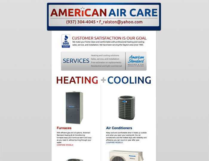 HVAC professional and my friend over at American Air Care didn’t have a website. He’d tried working with designers in the past, but things just never seemed to work out. So late last year, he approached me to design his website. He didn’t have much in the way of requirements: something that would feature his services and products along with contact information.